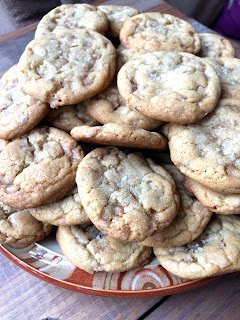 I stir up toffee and vanilla, and sprinkle sea salt on the top of each cookie just before tucking them in the oven...